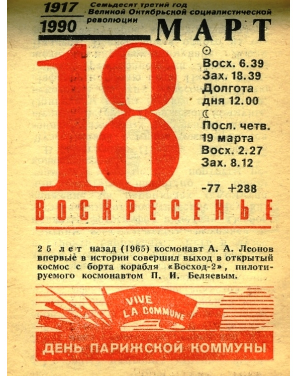 Вот уже и 18 марта. День Парижской коммуны. День – рабочий, но во всех календарях СССР выделенный красным. Для чего Советскому Союзу нужно было почитать эту потерпевшую закономерный провал попытку «французского пролетариата» установить свою власть в славном городе Париже в 1871 году?