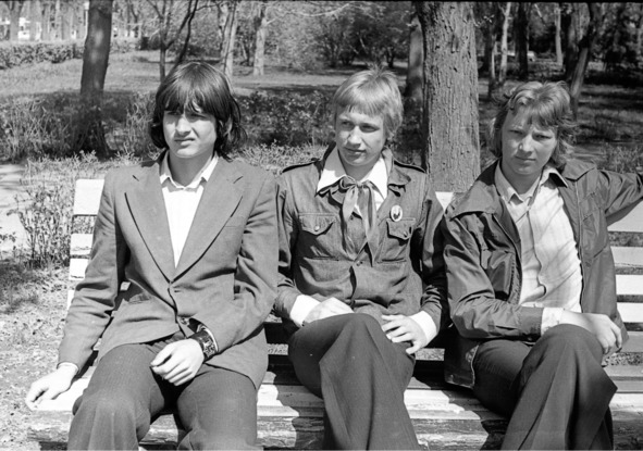 Как относились к этому повальному увлечению нашей молодёжи семья и школа? Родители не видели в этом ничего зазорного. Дети тешились. И если старики ещё поскрипывали зубами, встречая по вечерам бренчащие компании косматоголовых, то родители смотрели на всё смирено и благосклонно. И даже сами покупали джинсовую ткань, из которой во всех ателье кроили и шили роскошные «клёши» (обтягивающие ягодицы и расширяющиеся внизу до полуметра!).