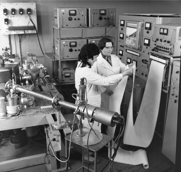 Над нашей школой шефствовали физические институты в которых работали наши родители. Одна из лабораторий ИЯФа. 1968 год.