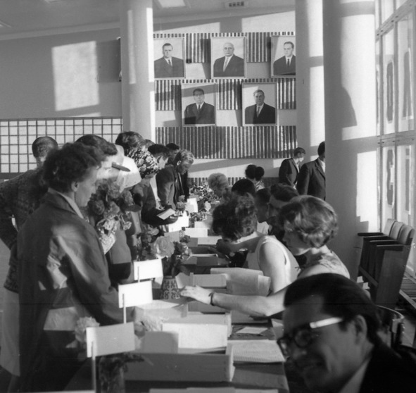 Выборы в Верховный Совет СССР. Фойе поселкового Дома Культуры. 1970 год.