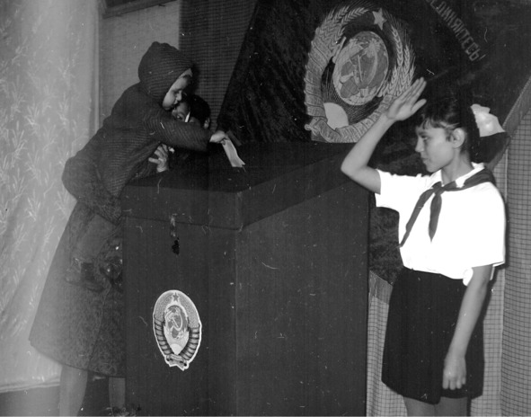 Когда же нам повязывали пионерские галстуки, наше участие в днях всенародных волеизъявлений становилось более полноценным. Пионеров, попарно, ставили к урне для бюллетеней – в почётный караул. Каждому избирателю, пришедшему отдать свой голос за «нерушимый блок коммунистов и беспартийных» мы, бодро вскидывая руки в пионерском приветствии, «отдавали честь».