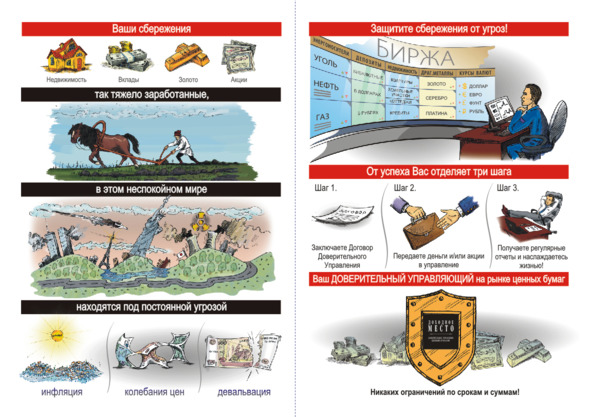 На основе Доверительного Управления (Д. У.) использовать колебания – спады и рост цен на рынках ценных бумаг, сырья, недвижимости.