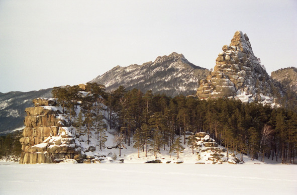 Волшебство так и витает вокруг в такое время. Ну, когда ещё можно так вот, запросто, подойти к Сфинксу – Жумбактасу и погладить его гранитные бока? Или улечься на отполированную ветрами ледяную поверхность застывшего Чебачьего озера и, заглянув вглубь, увидать, как в тёмной бездне ворочается сонная рыба? Или выйти на засыпанную свежим снегом «Байкальскую дорогу» и заслушаться такой совершенной и звенящей тишиной, что, случись где-нибудь вдалеке посыпаться с ветвей снегу, тут же почувствуешь шелест каждой отдельной снежинки?