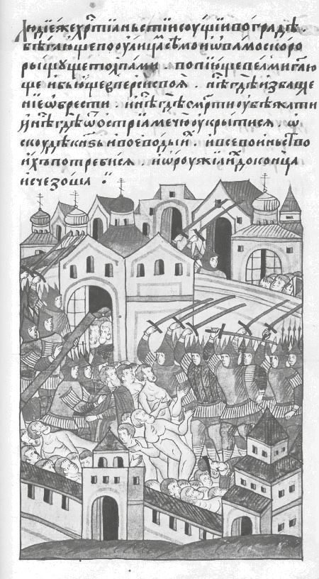 Однако к этому времени ситуация в городе резко ухудшилась – москвичи сели в осаду, а в самом городе начался «мятежь великъ». Одни горожане «хотеху сести въ граде и затворитися, а друзи бежати помышляху». Те, кто предлагал переждать татарскую угрозу в кремлевской крепости, не выпускали никого из города: «Не пущаху ихъ, но убиваху ихъ и богатство и имение ихъ взимаху».