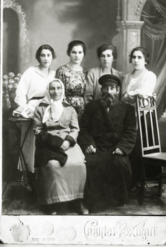 Позади родителей четыре их молодые, статные дочери. Крайняя справа – самая младшая, ангелоподобная красавица Златочка, крайняя слева, в матроске, с чистым, юным лицом – Рися, между ними старшие – Инда и Гитл.