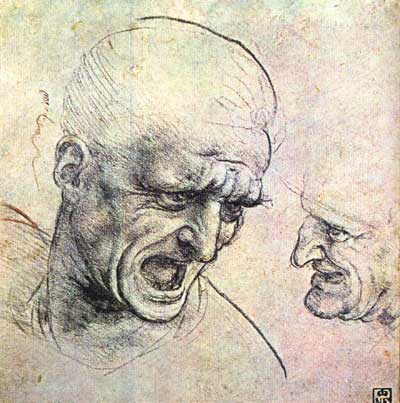 Леонардо да Винчи. Голова кричащего человека в профиль. Эскиз к «Битве при Ангари». 1503