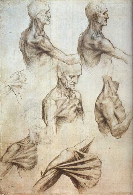 Леонардо да Винчи. Плечевой пояс мужчины. Этюды. 1510.