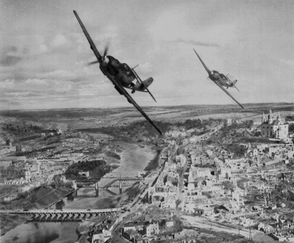 Над головами проносились чужие самолёты со зловещими чёрными крестами. Одни заходили на вокзал, другие утюжили военный аэродром. Рвались бомбы и в центре города.
