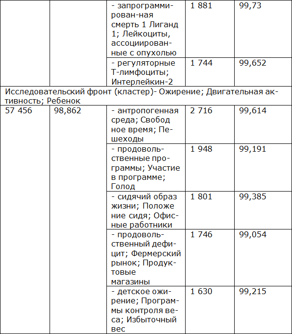 Таблица 1.2.3 – Анализ общемировых тематических кластеров