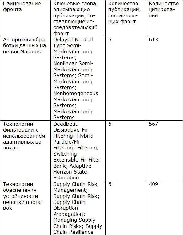 Рисунок 2.5.1 – Вклад России в глобальные исследовательские фронты, связанные с цифровыми технологиями