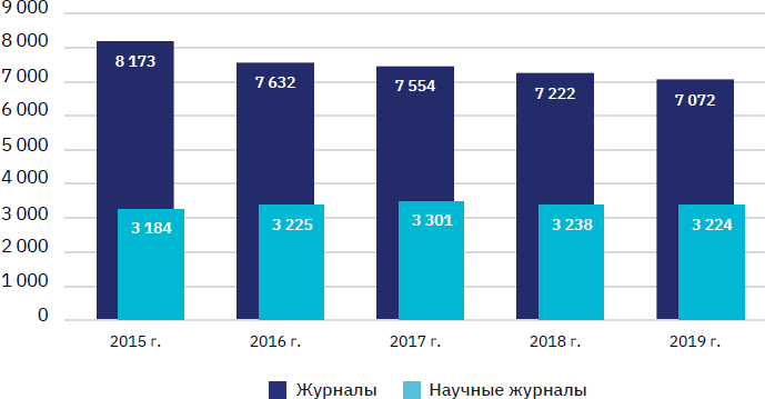 Рисунок 2.6.1 – Сведения о количестве издаваемых журналов в Российской Федерации за 2015–2019 годы