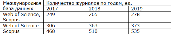 Таблица 2.6.3 – Количество российских научных журналов, включенных в международные базы данных Web of Science, Scopus