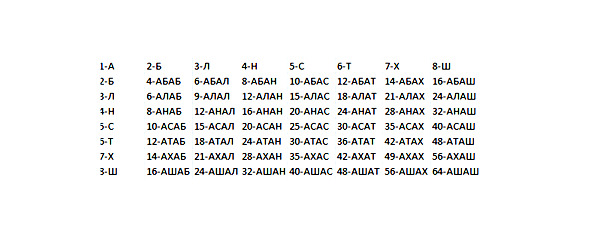 Первой была проявлена гласная буква «А»; как голосовая буква, первогласная «А», объединила собою категориальный класс (который в себя, как в категориальный класс, вобрал ментальные рода и виды корне/субстанциональных ноуменов сознания) ноуменально/видородных прообразов Бытия, в формировании которого участвовали согласные буквы, как согласовочные принципы ноуменального согласования; для чего согласовочные буквы входили в сцепление с гласными буквами, образуя согласовочные слога, результат слаженного согласования согласной буквы с любой гласной. Традиционно слогом считался союз двух букв, – одной согласной с одной гласной; гласных в праязыческом алфавите всего было пять, – это «1-А», объединившая собою класс Бытия; это «9-У», объединившая собою класс Ума; это «10-И», объединившая собою класс Инмира или класс физических величин природы; это «11-Е», объединившая собою класс Времени; это «12-О», объединившая собою класс Пространства. Каждый из категориальных классов: 1) Бытия; 2) Ума; 3) Инмира; 4) Времени; 5) и Пространства, – объединял собою по семь рядов, отдельно родовых, и отдельно видовых, групп или, двух спирале/ленточных колец, состоящих из нанизанных на каждый из них слогов, объединённых ленточно/двойной спиралью в корневые, двухслоговые, структуры, спиралевидно возносящихся от нисших к высшим или опускающихся от высших к нисшим, корне/субстанциональных тетроидов, предельными точками думных смыслов пресекающих безграничность бездумно/доязыческого безмыслия пустотной вечности Вселенной. Эти родовидовые, корне/субстанциональные образования, как было уже заявлено, формировались слогами, состоящими из объединения одной голосовой буквы с одной согласовочной буквой: а, б, л, н, с, т, х, ш; аб, ал, ан, ас, ат, аш. Объединившись, два слога, формировали тетроидный корень, предтечу словообразования; первый слог всегда был родовым, а второй – видовым, ведомым. Два корня с парно/одинаковыми слогами, свершая чудо оборотничества, меняя слога на противоположные в каждом из корней, формировали корне/субстанциональные объединения, предтеч словотворения: абал-алаб, анаб-абан, анал-алан, атан-анат, анаш-ашан… Это корнеслоговые субстанциональные корни; но есть и разнослоговые корневые субстанции, которые обмениваться слогами не могут: абал-анат, анаб-асан, абас-анал, асат-атан, но зато способны формировать слова, обогащая возможности языка к словотворению.