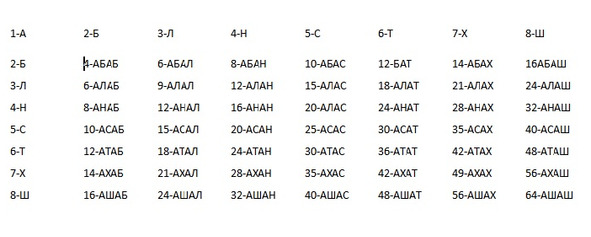 В период времени, от начала позднего ашеля и до конца мустье, палестинские палеоантропы развили язык наименовальных прообразов, т.е. образы наиболее значимых элементов природы закодировали буквенно-числовыми элементами, создав формы мысли, адекватные элементам природы. Мыслеформы проявили видовое многообразие природы, идеоимена (идеомы) вещей адекватно отразили в сознании человека сами вещи. Процесс адаптации ментальной формы миропостижения проходил через слоговое комбинирование в корневых тетро/триадах, координация слогов в которых вела к созданию речи, основанной на ноуменальных принципах родо – и – видо оформления образов природы. Метод слогового комбинирования позволил конструировать двухслоговые тетракиды. Тетрактидные корни стали корневой основой языка прообразов бытия, что позволило проявить именами существующие образы природы. Буква, слог, корневая лексическая тетрактида, слово, – каждое из них есть независимое, существующее само по себе целое, однако, входя в более сложные лингвистические конструкции речи и письма, они существенно меняют смысл того, что передают в новой комбинации.
