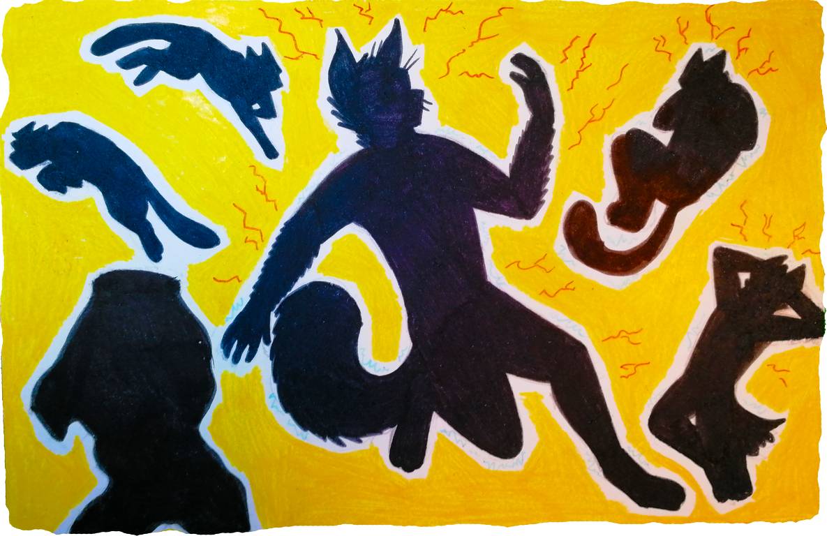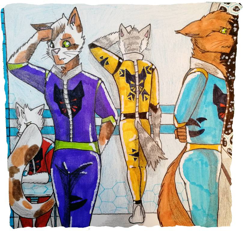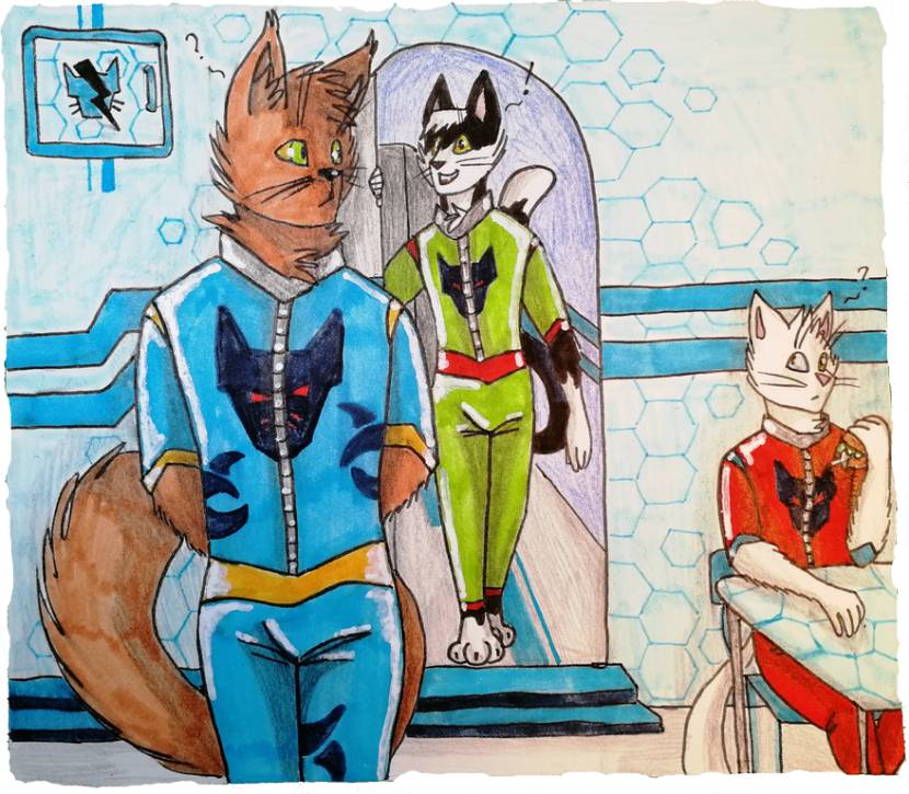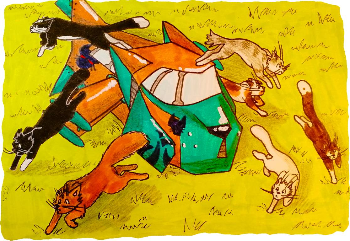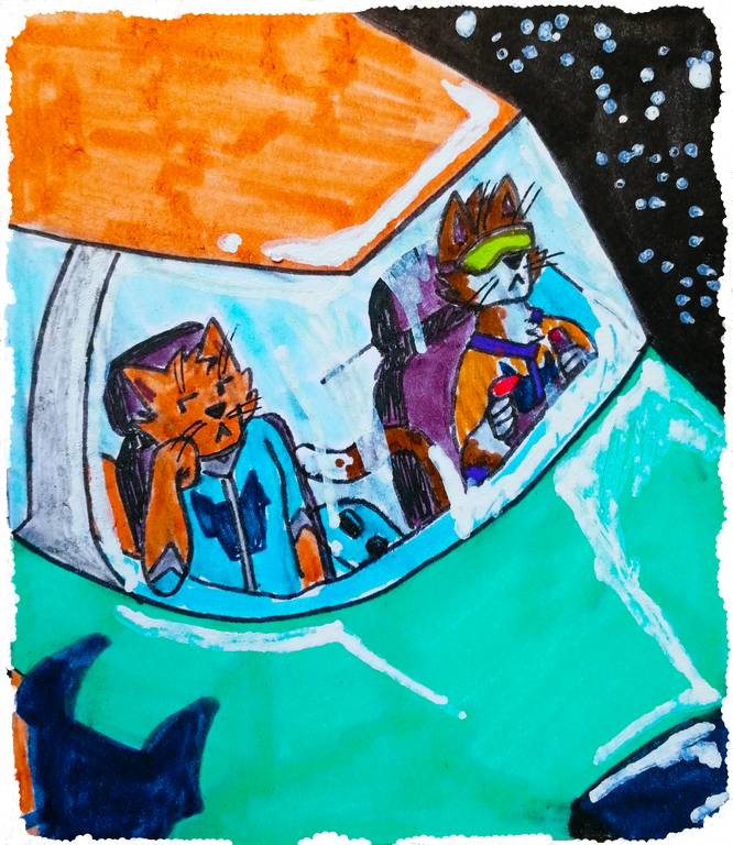 С дикими визгами из корабля кубарем выкатились семеро котов и кошек в межгалактических скафандрах, которые, впрочем, они очень быстро порвали в драках между собой.