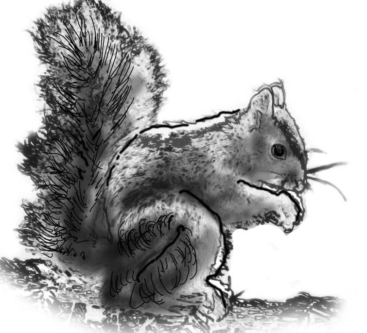 Мы следили за той, что очутилась у нас над головой, боясь потерять белку из виду. Но хвостатая баловница и не старалась скрыться. Последние слова деда вроде чем-то её и затронули: обиделась ли? Встала на ветке, забормотала.