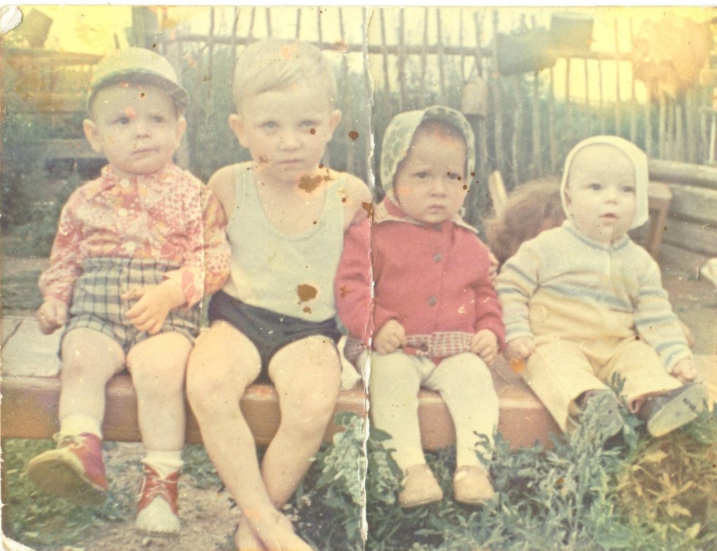 Братанья (слева направо: Кутузов Е., Кириллов А., Черенцов А., Кутузов Д.), лето 1976 г. (фото из личного архива автора)