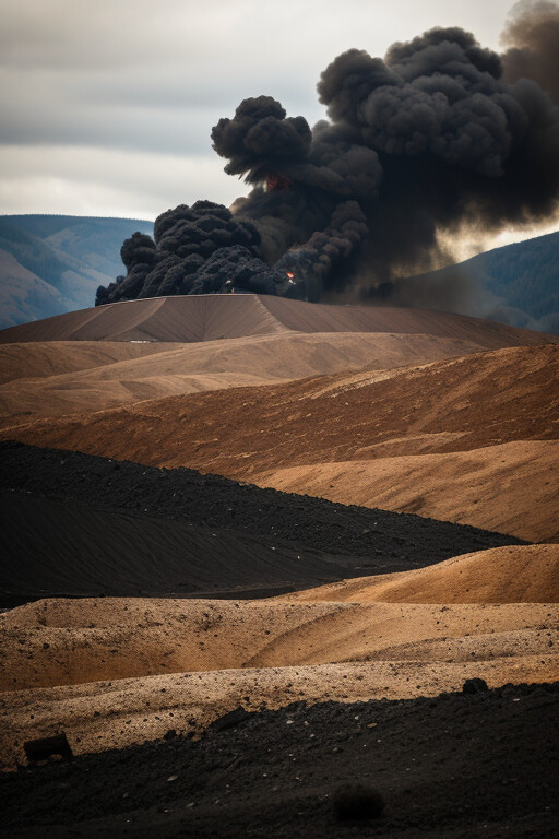 Разбитые гигантские пласты земли, чёрные клубы дыма между трещинами пластов, ядовитый жар в пыльном воздухе и покрытое серой дымкой небо. Ни растений, ни жизни.