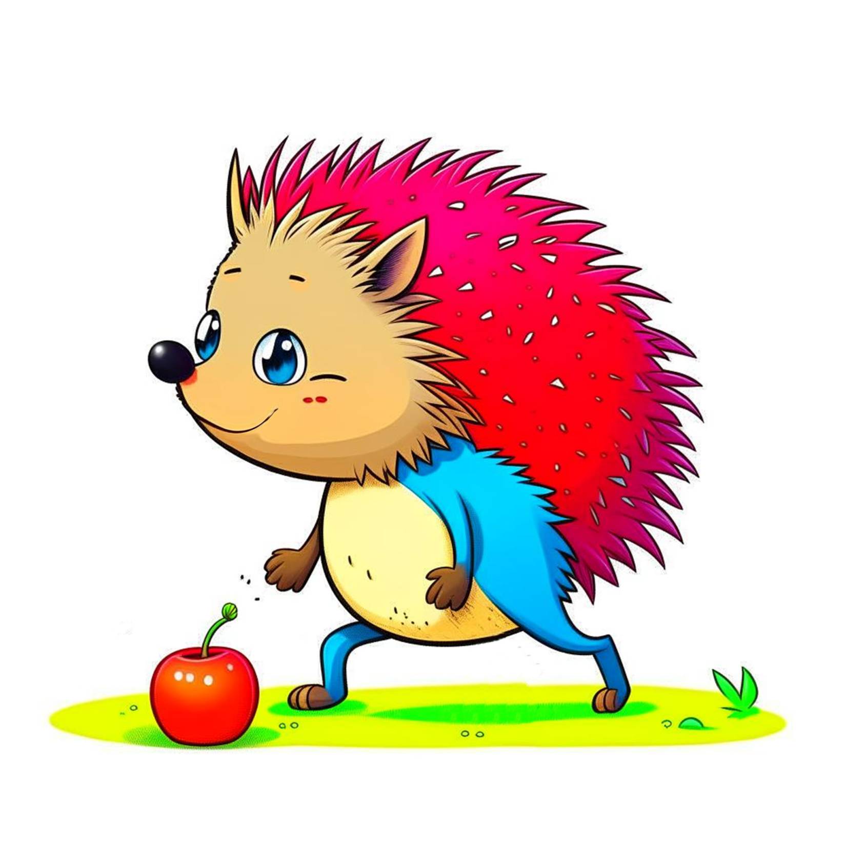 Однажды, Зайка шёл по лесу и увидел красивое яблоко. Ему захотелось откусить кусочек. Зайка протянул руку, но яблоко вдруг начало убегать от него. Зайка тотчас услышал громкое «фыр-фыр-фыр», доносившееся из травы… Оказывается яблоко лежало на спине у Ёжика, а тот как раз собрался уходить на обед.