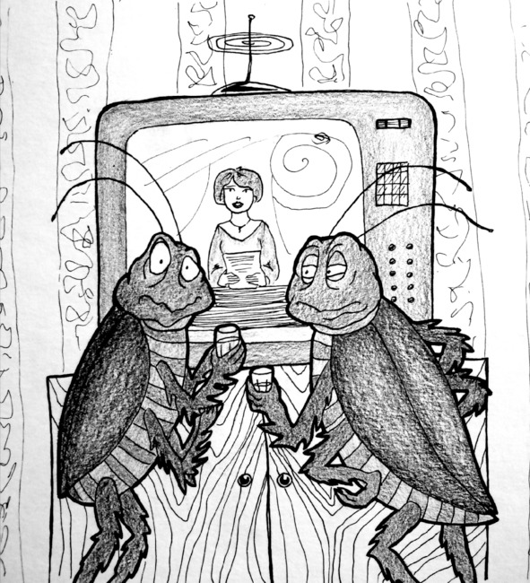 …Два таракана, один – огромный, с седыми усами, другой – совсем юный с ярким коричневым панцирем, перебирая заплетающимися лапами, неловко поползли домой – в приличную такую щель под плинтусом…