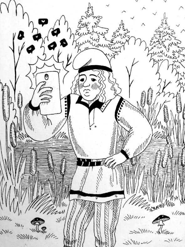 Пришёл, глядь – а вместо лужи целое озеро! Решил он дать озеру название – Эпатаж, от слова «эмпатия». Посадил он рассаду, и вырос целый лес селфи-палок. И набежало к этим селфи-палкам селфи-зверьё, зашумел лес от селфи-мычания этого селфи-зверья.