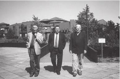 Справа налево: писатель Д. А. Гранин, вице-губернатор Санкт-Петербурга В. П. Яковлев, скульптор Г. Д. Ястребенецкий