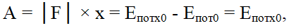 где A – работа силы на пути x, равная изменению потенциальной энергии материальной точки.
