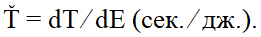 И для того чтобы было возможно сравнивать между собой процессы одного и того же вида, но происходящие при разных условиях, необходимо ввести скорость изменения величины временного интервала по отношению к одной из величин, входящих в выражение для него и являющихся по отношению к нему аргументом. Наиболее универсальной в этом смысле является величина вложенной в процесс энергии. Поэтому для характеристики процесса введем производную от времени по величине вложенной энергии и назовем ее темпом времени: