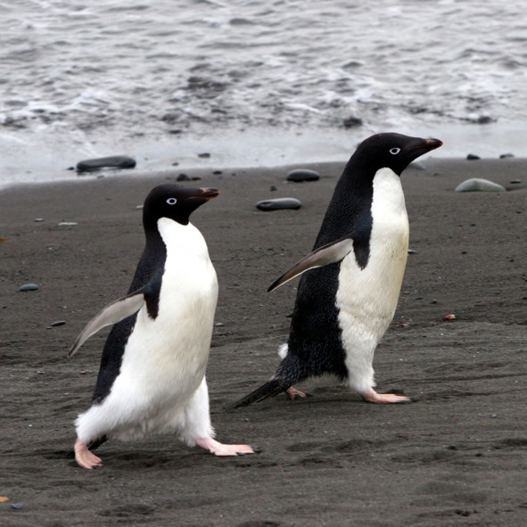 Пингвины Адели не только отличные пловцы, но и прекрасные ходоки – у них удивительно развит инстинкт «возвращения домой». Адели образуют постоянные пары и ежегодно возвращаются на те же места гнездовья. Выпущенные за тысячи километров от родного побережья, они безошибочно возвращаются на место гнездования. Доказательством верности прошлому служит способность пингвинов возвращаться в родную колонию для выведения своего потомства, где они родились. Так с одного из островов недалеко от станции Мирный было отловлено 50 пингвинов Адели. Их окольцевали и отвезли в район американской станции Мак-Мердо. Там их соединили с местной колонией Адели. Расстояние, отделявшее их от родного острова, было около 4500 километров. Но уже через год на родном острове начали встречать окольцованных странников. Это не единственный эксперимент. Как бы далеко их не отвозили от места постоянного обитания, пингвины приходили в свои родные колонии.