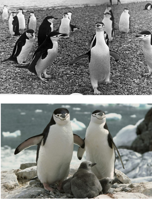 Антарктические пингвины в отличие от Аделей и Папуа – спокойные, подвижные, общительные – джентльмены.
