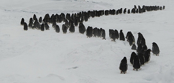 Около двух месяцев в году императорские пингвины проводят в море, а в остальное время (восемь долгих зимних антарктических месяцев) уходят ближе к материку по семейным обстоятельствам.