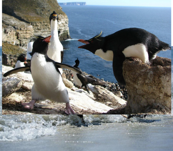 Cеверный и южный хохлатые пингвины Рокхоппера