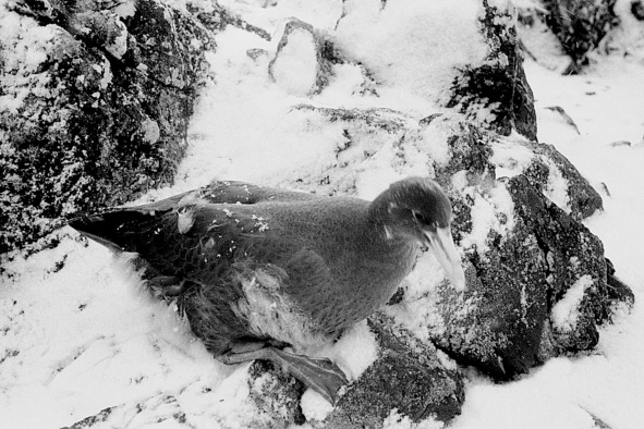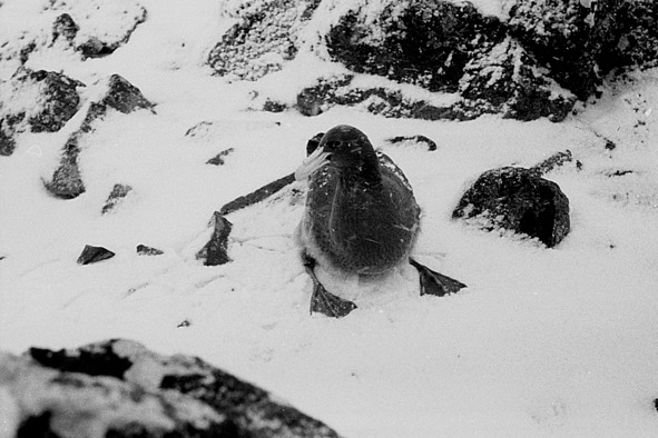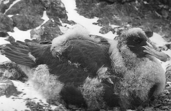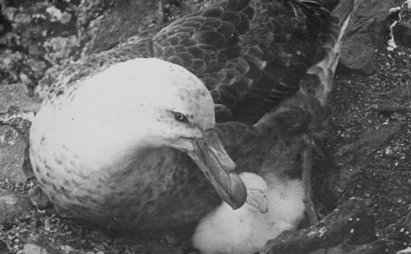 В конце ноября большинство птиц уже сидели на яйцах. Обычно в кладке одно яйцо белого цвета размером около 10 см! Птицы сидят на яйцах и не взлетают даже если их погладить рукой, только издают шипящие звуки, а некоторые метко обстреливают двуногого пришельца желудочной жидкостью. В январе – феврале появились первые птенцы.