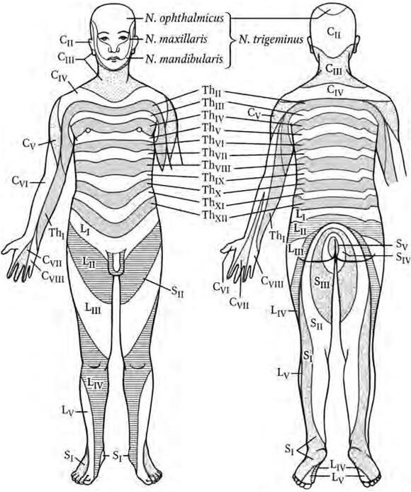 Рис. 1.4. Сегментарная иннервация кожи (по Hansen-Schliack)