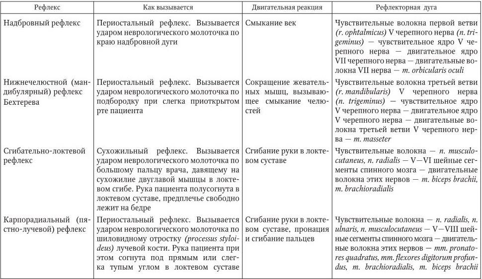 – поверхностные и глубокие. Поверхностные рефлексы вызываются с кожи и слизистых оболочек, глубокие возникают в ответ на удар неврологическим молоточком по сухожилию или надкостнице (соответственно сухожильные и периостальные).