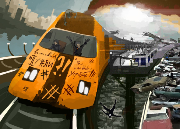 – А потом и едоки налетели, – продолжал Край. – Поезду только и осталось, что выкинуть буй и ждать подмоги. В чернолуние дроны камни убрали, переходы починили, но и сам поезд чуть не растащили по кускам. Там с движком что-то жуткое. Да еще машинист ранимый попался – этот г@ц только и может, что за голову хвататься и твердить: «Эта штука не поедет… эта штука никуда не поедет»…