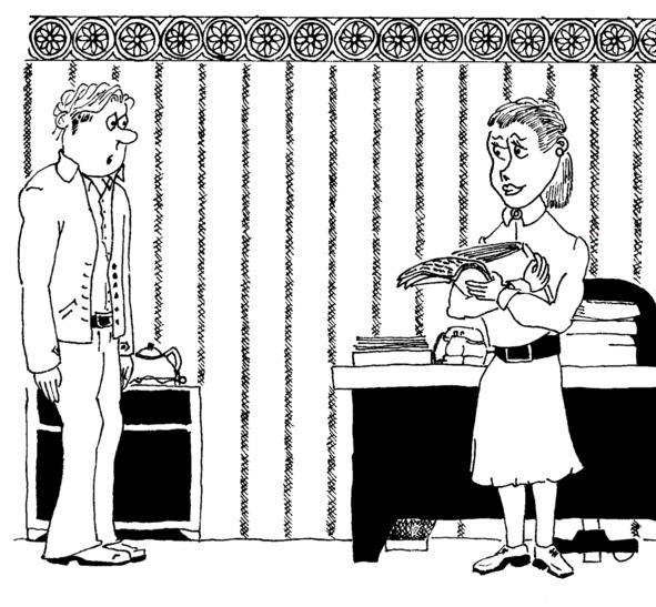 – Чем могу помочь? – Спросила секретарша, обращаясь к мужчинам.