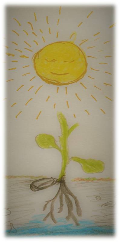 Так и вы, детишки, растете, год за годом, выше и выше, становитесь сильнее. Для этого надо хорошо кушать. А вот деревья питаются из земли, с помощью корней. Посмотрите картинку, как растет из семечка подсолнух!