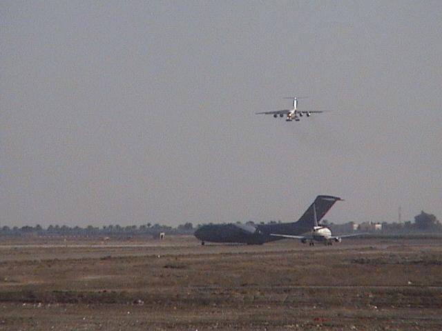 Ил-76 перед посадкой в Багдаде на фоне дворца Садама