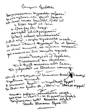 По всей вероятности под впечатлением ничтожности всех этих литературных работ Грибоедов сетовал в письме Бегичеву 9 сентября 1825 года: «Ничего не написал – не знаю, не слишком ли я от себя требую? умею ли писать? Право, для меня все еще загадка. Что у меня с избытком найдется, что сказать, – за это ручаюсь; отчего же я нем? Нем, как гроб!»