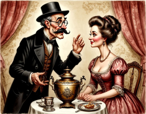 И дождавшись закипания самовара, они неспешно позавтракали, вспоминая их бурный роман в молодости, поездку в Париж, знакомых и друзей своего дворянского круга, балы, приёмы и прочие радости местной богемы до революции.