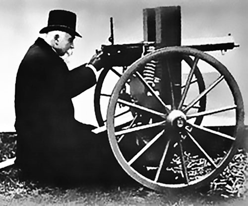 Автоматическим оружием массового поражения на вооружение армии был 7,62-мм пулемет «Максим». Первоначально его закупал флот у фирмы «Виккерс», так как масса тех конструкций с колесами и броневым щитом составляла 250 кг. Первый образец пулемета появился в 1873 году и был разработан американским оружейником Хайрем Максимом (1840–1916). Правда, это изобретение не заинтересовало армию США и даже Великобританию. Только банкир Натиэль Ротшильд согласился финансировать разработку и наладил производство. Через 14 лет, благодаря указаниям Александр III пулемет оказался в России, где российские оружейники переделали пулемет под 7,62 мм патрон русской винтовки, уменьшили массу до 60 кг и с марта 1904 года при содействии предприятия «Братья Виккерс и Максим» на Тульском оружейном заводе начался выпуск пулемета. Эффективная дальность стрельбы до 2000 м со средним темпом стрельбы 600 выстрелов в минуту. На вооружении этот тип пулемета просуществовал до 1945 года. По насыщению пулеметами русская армия не уступала французской и германской армиям. Русский пехотный полк по штату 1910 года имел на вооружении пулеметную команду с 8-ю станковыми пулеметами Максима.
