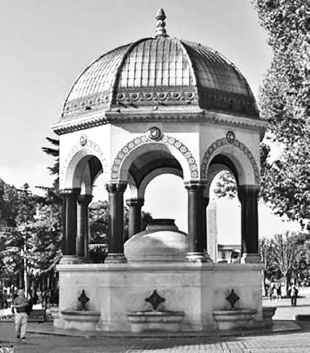 27 апреля 1909 году Абдула – Хамид был низложен, арестован и отправлен для содержания под стражей в Салоники (Македония). В 1912, в связи с начавшейся балканской войной, его перевезли обратно в Стамбул, где он и умер в заключении. Состояние султана было депонировано в европейских банках, а после лишения его трона значительная часть его достояния (два миллиона фунтов стерлингов) оказалась в руках самого кайзера Вильгельма. Старания кайзера о спасении султана были не напрасны. При этом не надо забывать, о щедром подарке – Немецком фонтане кайзера Вильгельма II своему союзнику Абдула-Хамиду II в 1901 году. Все элементы конструкции были изготовлены в Германии. В Константинополь его привезли на поезде и собрали. Псевдовизантийский фонтан построен в виде беседки и украшен изнутри золотыми мозаиками. До сих пор он является украшением площади Султанахмет, разбитой на месте античного ипподрома столицы.