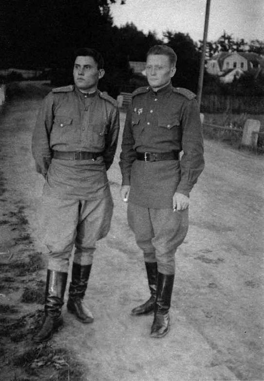 А. М. Южаков и лейтенант Александр Смирнов, командир саперного взвода. Враж (Писек), Чехия, 1945 г.