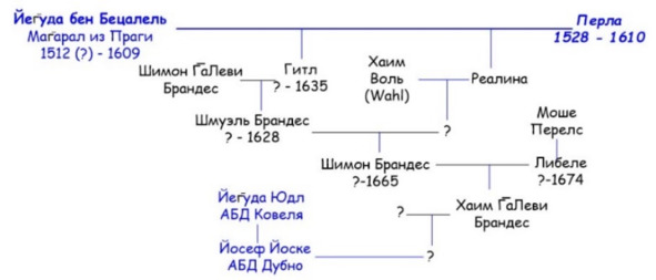 Описанная генеалогическая цепочка «супруга Йосефа-Йоски ав-бейт-дин Дубно ― Маг̄арал из Праги» не подвергается сомнению ни в одном из изученных источников. Таким образом, все суждения исследователей родословной С. М. Дубнова относительно его родства с Маг̄аралом и наследовании его ментальности приобретают доказанную базу70.