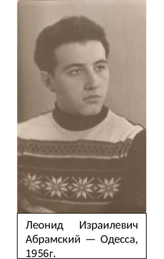 Леонид Израилевич Абрамский родился 21 августа 1935 года в Херсоне в семье Израиля Яковлевича (Эли-Гешелевича) Абрамского и Софьи (Спринцы) Исааковны Сорокиной-Абрамской. Недавно я услышала от общих родственников воспоминания об их семье. Семья Изи и Сони была очень гостеприимной, готовой в любой момент помочь родным и друзьям, в их доме царила атмосфера любви и уважения друг к другу. Мама Лёни была очень преданной женой и матерью, идеальной хозяйкой, в доме у них всё сияло, всегда был накрыт стол для любимых мужа и сына, для гостей, нередко появлявшихся в доме Абрамских. Вот в такой семье посчастливилось родиться и расти мальчику Лёне.