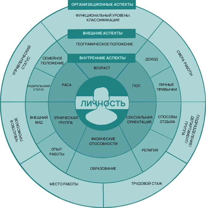 Повторимся, что при построении культуры многообразия особое внимание важно уделять именно базовым характеристикам: полу, возрасту, физическим и ментальным особенностям, этнической и национальной принадлежности, сексуальной ориентации. Чуть дальше мы посвятим каждой из них отдельные главы.