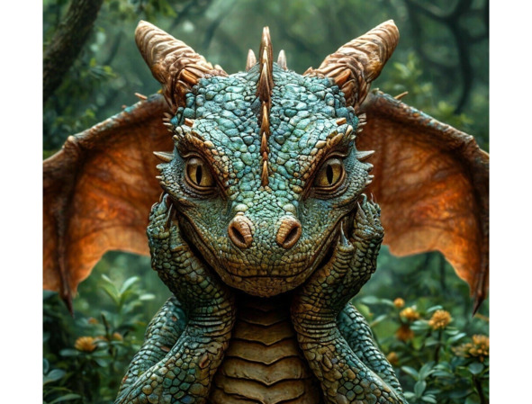 В маленькой деревушке, у подножья зелёного холма, жил дракон по имени Флориан. Он был необычным драконом: у него были огромные фиолетовые крылья и сверкающая золотая чешуя. Несмотря на внушительный вид, Флориан был очень добрым и любил дружить со зверятами в лесу.