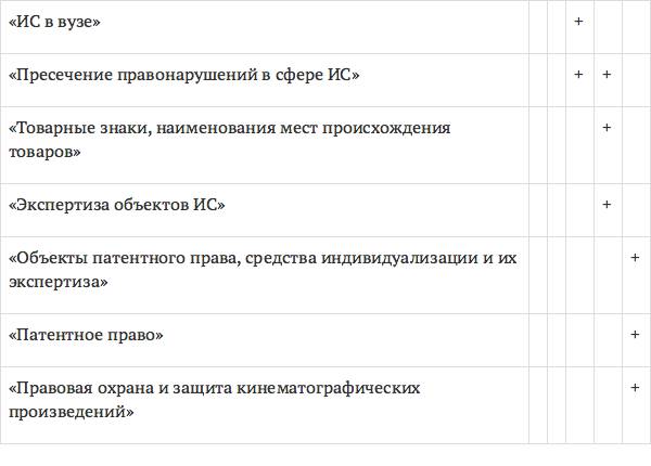 В период с 2009 по 2011 год наиболее востребованными программами являлись «Правовая охрана и защита ИС», «Оценка стоимости предприятия (бизнеса)», «ИС. Патентоведение», «Патентовед».