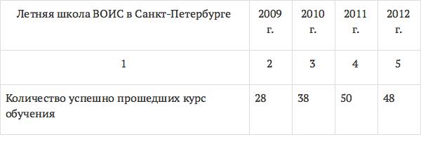 Анализ данных, представленных в таблице 6, показал, что количество обучающихся по программе Летней школы ВОИС в Санкт-Петербурге, достаточно стабильное и имеет тенденцию к увеличению.